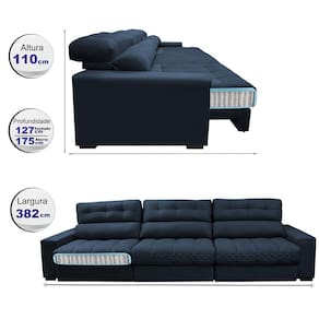 Sofá Retrátil e Reclinável com Molas Ensacadas Cama Inbox Master 3,82m Tecido Suede Azul - Azul Marinho
