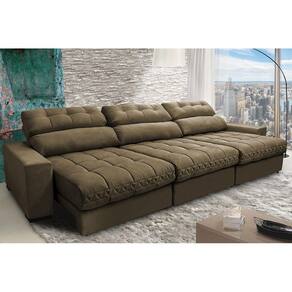 Características: -Encosto Reclinável com 5 posições, almofadas fixas compostas de 80% fibra siliconada e 20% flocos de espuma e percintas elásticas para maior conforto. -Assentos: Retráteis com espuma D33 envolvidas em ultra camada de fibra SILICONADA compactada, Molas ensacadas grandes, Molas Bonnel, percintas Pneumáticas com feltro para proteger do atrito com as molas. -Braços: Com 25cm de largura e com espuma D33. -Fixação: Grampos galvanizados -Estrutura de Madeira maciça 100% eucalipto de reflorestamento, produto ecologicamente correto. -Tecido suede com toque aveludado -Pés em PVC