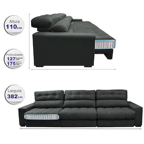 Sofá Retrátil e Reclinável com Molas Ensacadas Cama Inbox Master 3,82m Tecido Suede Cinza - Grafite