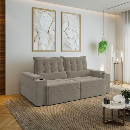 Os estofados retráteis Embaúba Extra combinam linhas econômicas e um design robusto, sem excessos, ideal para uma sala de estar ou home cinema com um estilo moderno e sofisticado, proporcionando conforto para toda a família. Com suas medidas amplas, são ideais para acomodar todos com comodidade. Além disso, apresentam uma ampla variedade de cores para se adaptarem a diferentes estilos de decoração. Os estofados também oferecem opções de cores em tecido de veludo fosco de fácil limpeza com resistência a manchas. O encosto possui uma catraca blindada de 7 estágios de reclinação, preenchida com 100% de fibra siliconada para máximo conforto. Além disso, os sofás possuem porta-copos e cabos USB integrados para uma experiência de entretenimento ainda mais conveniente. A estrutura, feita de eucalipto reflorestado, garante excelente resistência e durabilidade.