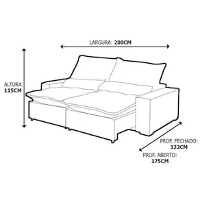 Medidas: Altura: 115cm Largura: 200cm Profundidade Fechado: 122cm Profundidade Aberto: 160cm Imagens meramente ilustrativas. Não nos responsabilizamos pela montagem/instalação dos produtos. A tonalidade do produto pode variar entre a imagem de exibição e o item físico. Todas as informações divulgadas são de responsabilidade do Fabricante/Fornecedor.