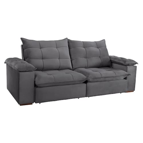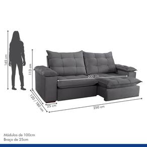 Sofá Retrátil e Reclinável Espanha Veludo Cinza 2,50M