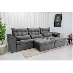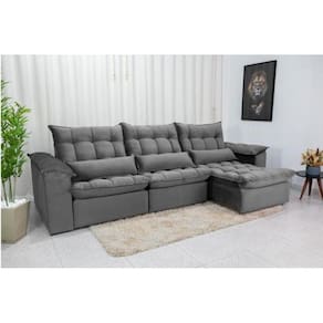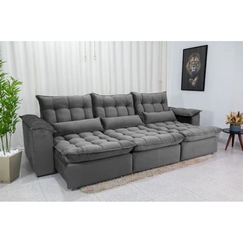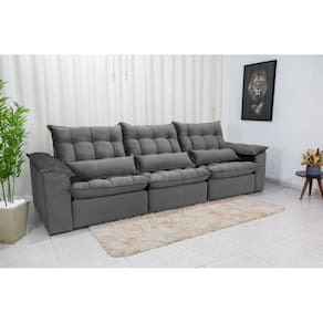 Sofá Retrátil e Reclinável Ipanema 2,10m em Tecido Veludão C/ 03 Módulos - Montagem Inclusa - Cinza