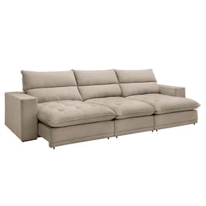 O sofá retrátil e reclinável Martinho de 320cm oferece o máximo conforto e versatilidade. Com design elegante e acabamento impecável, suas características diferenciadas incluem assentos retráteis para ajuste personalizado, encostos reclináveis para relaxamento total e materiais de alta qualidade que garantem durabilidade. Ideal para quem busca sofisticação e praticidade em um único produto, o Martinho se destaca pela sua funcionalidade e estilo, tornando-se o complemento perfeito para qualquer ambiente. Acompanha Almofadas extras: Não Almofada do assento: Fixa Almofada do encosto: Removível Altura do assento até o chão: 53 Altura do Encosto: 59 Altura dos Pés: 2.5 Ambiente Principal: Sala de Estar Complexidade da Montagem: Baixa: pode ser montado por uma pessoa sozinha Cor: Bege Cor do Produto: Bege Densidade do Assento: D-28 Densidade do Encosto: D-18 Enchimento do Assento: Espuma Enchimento do Encosto: Fibra Siliconada Estilo de Braço: Braços Quadrados Firmeza do Assento: Firme Itens Inclusos: 1 Sofá Linha ou Coleção: Martinho Material dos Pés: Madeira Necessita Montagem: Sim Origem do Produto: Nacional Peso: 118.3 Pet Friendly: Não Possui Baú: Não Possui Percintas Elásticas: Sim Possui Pés: 16 Possui Rodízio: Sim Profundidade Quando Estendido: 180 Quantidade de Itens: 1 Recomendações de Uso, Manutenção e Limpeza: Para limpar, utilize pano seco ou papel absorvente. Não armazenar em local úmido. Não usar produtos químicos como detergente, cloro, alvejantes entre outros. Evitar exposição a luz solar direta por longos períodos. Resistente à Chuva: Não Revestimento do Braço: Boucle Rodízio com Trava: Não Sistema de Montagem: Encaixe. Suporta Até (kg): 120 Tecido Predominante: Não Possui Tipo de Encosto: Regulável Tipo de Madeira Maciça da Estrutura: Eucalipto Tipo de Mola: Molas Ensacadas (Molas ensacadas) Marca: Celflex