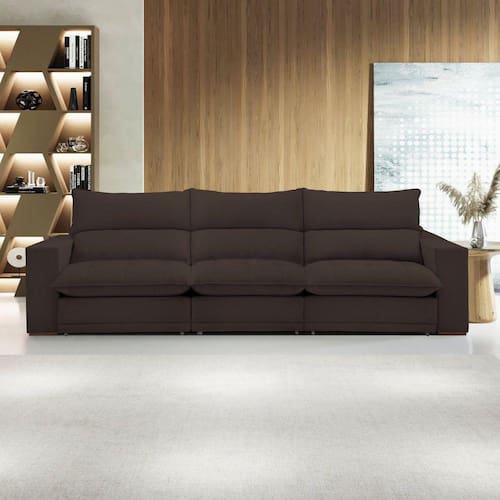 O sofá retrátil e reclinável Martinho de 320cm oferece o máximo conforto e versatilidade. Com design elegante e acabamento impecável, suas características diferenciadas incluem assentos retráteis para ajuste personalizado, encostos reclináveis para relaxamento total e materiais de alta qualidade que garantem durabilidade. Ideal para quem busca sofisticação e praticidade em um único produto, o Martinho se destaca pela sua funcionalidade e estilo, tornando-se o complemento perfeito para qualquer ambiente. Acompanha Almofadas extras: Não Almofada do assento: Fixa Almofada do encosto: Removível Altura do assento até o chão: 53 Altura do Encosto: 59 Altura dos Pés: 2.5 Ambiente Principal: Sala de Estar Complexidade da Montagem: Baixa: pode ser montado por uma pessoa sozinha Cor: Marrom Cor do Produto: Marrom Densidade do Assento: D-28 Densidade do Encosto: D-18 Enchimento do Assento: Espuma Enchimento do Encosto: Fibra Siliconada Estilo de Braço: Braços Quadrados Firmeza do Assento: Firme Itens Inclusos: 1 Sofá Linha ou Coleção: Martinho Material dos Pés: Madeira Necessita Montagem: Sim Origem do Produto: Nacional Peso: 118.3 Pet Friendly: Não Possui Baú: Não Possui Percintas Elásticas: Sim Possui Pés: 16 Possui Rodízio: Sim Profundidade Quando Estendido: 180 Quantidade de Itens: 1 Recomendações de Uso, Manutenção e Limpeza: Para limpar, utilize pano seco ou papel absorvente. Não armazenar em local úmido. Não usar produtos químicos como detergente, cloro, alvejantes entre outros. Evitar exposição a luz solar direta por longos períodos. Resistente à Chuva: Não Revestimento do Braço: Veludo Rodízio com Trava: Não Sistema de Montagem: Encaixe. Suporta Até (kg): 120 Tecido Predominante: Veludo Tipo de Encosto: Regulável Tipo de Madeira Maciça da Estrutura: Eucalipto Tipo de Mola: Molas Ensacadas (Molas ensacadas) Marca: Celflex