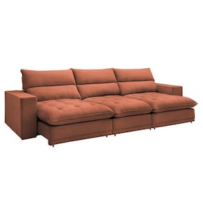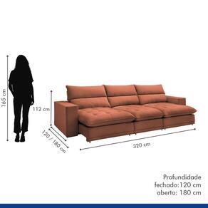 O sofá retrátil e reclinável Martinho de 320cm oferece o máximo conforto e versatilidade. Com design elegante e acabamento impecável, suas características diferenciadas incluem assentos retráteis para ajuste personalizado, encostos reclináveis para relaxamento total e materiais de alta qualidade que garantem durabilidade. Ideal para quem busca sofisticação e praticidade em um único produto, o Martinho se destaca pela sua funcionalidade e estilo, tornando-se o complemento perfeito para qualquer ambiente. Acompanha Almofadas extras: Não Almofada do assento: Fixa Almofada do encosto: Removível Altura do assento até o chão: 53 Altura do Encosto: 59 Altura dos Pés: 2.5 Ambiente Principal: Sala de Estar Complexidade da Montagem: Baixa: pode ser montado por uma pessoa sozinha Cor: Terracota Cor do Produto: Terracota Densidade do Assento: D-28 Densidade do Encosto: D-18 Enchimento do Assento: Espuma Enchimento do Encosto: Fibra Siliconada Estilo de Braço: Braços Quadrados Firmeza do Assento: Firme Itens Inclusos: 1 Sofá Linha ou Coleção: Martinho Material dos Pés: Madeira Necessita Montagem: Sim Origem do Produto: Nacional Peso: 118.3 Pet Friendly: Não Possui Baú: Não Possui Percintas Elásticas: Sim Possui Pés: 16 Possui Rodízio: Sim Profundidade Quando Estendido: 180 Quantidade de Itens: 1 Recomendações de Uso, Manutenção e Limpeza: Para limpar, utilize pano seco ou papel absorvente. Não armazenar em local úmido. Não usar produtos químicos como detergente, cloro, alvejantes entre outros. Evitar exposição a luz solar direta por longos períodos. Resistente à Chuva: Não Revestimento do Braço: Boucle Rodízio com Trava: Não Sistema de Montagem: Encaixe. Suporta Até (kg): 120 Tecido Predominante: Não Possui Tipo de Encosto: Regulável Tipo de Madeira Maciça da Estrutura: Eucalipto Tipo de Mola: Molas Ensacadas (Molas ensacadas) Marca: Celflex