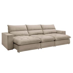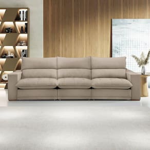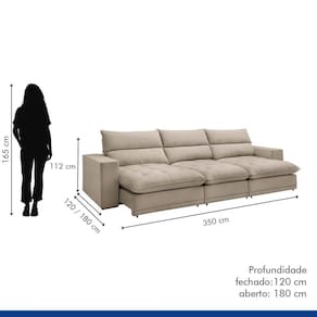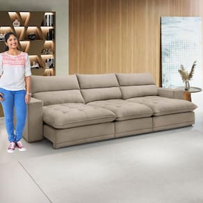 O sofá retrátil e reclinável Martinho de 350cm oferece o máximo conforto e versatilidade. Com design elegante e acabamento impecável, suas características diferenciadas incluem assentos retráteis para ajuste personalizado, encostos reclináveis para relaxamento total e materiais de alta qualidade que garantem durabilidade. Ideal para quem busca sofisticação e praticidade em um único produto, o Martinho se destaca pela sua funcionalidade e estilo, tornando-se o complemento perfeito para qualquer ambiente. Acompanha Almofadas extras: Não Almofada do assento: Fixa Almofada do encosto: Removível Altura do assento até o chão: 53 Altura do Encosto: 59 Altura dos Pés: 2.5 Ambiente Principal: Sala de Estar Complexidade da Montagem: Baixa: pode ser montado por uma pessoa sozinha Cor: Bege Cor do Produto: Bege Densidade do Assento: D-28 Densidade do Encosto: D-18 Enchimento do Assento: Espuma Enchimento do Encosto: Fibra Siliconada Estilo de Braço: Braços Quadrados Firmeza do Assento: Firme Itens Inclusos: 1 Sofá Linha ou Coleção: Martinho Material dos Pés: Madeira Necessita Montagem: Sim Origem do Produto: Nacional Peso: 133.9 Pet Friendly: Não Possui Baú: Não Possui Percintas Elásticas: Sim Possui Pés: 20 Possui Rodízio: Sim Profundidade Quando Estendido: 180 Quantidade de Itens: 1 Recomendações de Uso, Manutenção e Limpeza: Para limpar, utilize pano seco ou papel absorvente. Não armazenar em local úmido. Não usar produtos químicos como detergente, cloro, alvejantes entre outros. Evitar exposição a luz solar direta por longos períodos. Resistente à Chuva: Não Revestimento do Braço: Boucle Rodízio com Trava: Não Sistema de Montagem: Encaixe. Suporta Até (kg): 120 Tecido Predominante: Não Possui Tipo de Encosto: Regulável Tipo de Madeira Maciça da Estrutura: Eucalipto Tipo de Mola: Molas Ensacadas (Molas ensacadas) Marca: Celflex