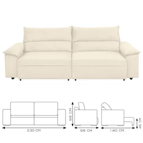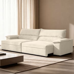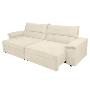 Sofá Retrátil e Reclinável Molas Ensacadas 230cm Veludo Malta Bege Claro
