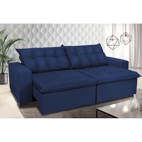 Procurando novidade e sofisticação em um estofado? Conheça o Sofá Oklahoma. Este estofado possui 2,02m de comprimento e aberto pode ser uma cama. Seu revestimento é em tecido Suede, seus assentos possuem molas bonnel, seus encostos são em fibra de silicone macios como um travesseiro. Tudo isso faz deste produto sinônimo de sofisticação e extremo conforto. Seu design com encosto reclinável e assentos retráteis tornam este produto muito espaçoso para você e sua família! "Desfrutar de um bom filme em sua sala não será mais como antes"