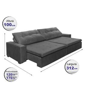 -Encosto Reclinável com 5 posições, almofadas fixas compostas de 70% fibra siliconada e 30% flocos de espuma. Percintas elásticas e manta siliconada para maior conforto.
