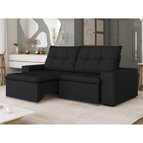 Sofá Retrátil e Reclinável para Sala de Estar Damasco Preto