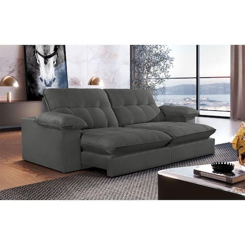 Suavidade e conforto em sua casa com o Sofa JUIZ DE FORA que possui encosto reclinavel, assento com Pillow de molas ensacada, fibra siliconada, assento retratil com rodizios que facilitam seu movimento.