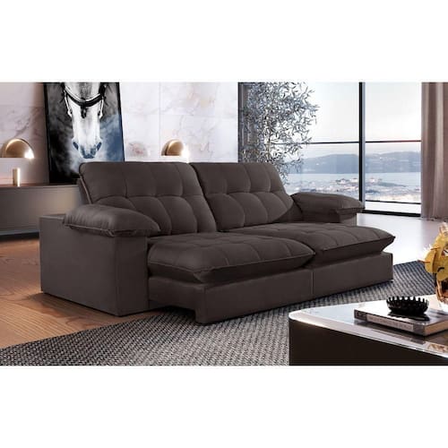 Suavidade e conforto em sua casa com o Sofa JUIZ DE FORA que possui encosto reclinavel, assento com Pillow de molas ensacada, fibra siliconada, assento retratil com rodizios que facilitam seu movimento.