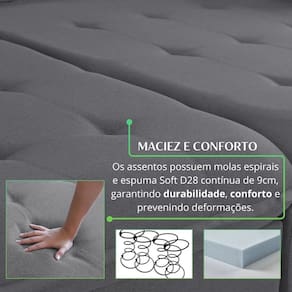 Este sofá retrátil estofado em linho oferece o máximo em conforto e praticidade, com braços almofadados que adicionam um toque extra de aconchego. Seu encosto com reclinação de 90 graus permite ajustar a posição para relaxamento ideal. O design moderno e funcional faz dele a escolha perfeita para quem busca um mobiliário versátil e elegante. Ideal para otimizar o espaço sem sacrificar o estilo. Produto Montado: Sim Acompanha Almofadas extras: Não Almofada do assento: Fixa Almofada do encosto: Removível Altura do assento até o chão: 45.0000 Altura do Encosto: 105 cm Ambiente Principal: Sala de Estar codigo_ean: 7909903856789 Complexidade da Montagem: Baixa: pode ser montado por uma pessoa sozinha Consistência do Assento: Macio Cor: Cinza Cor do Produto: Cinza Densidade do Assento: D-28 Enchimento do Assento: Espuma Estilo de Braço: Braços Quadrados Firmeza do Assento: Macio Itens Inclusos: 1 sofá retrátil. Linha ou Coleção: Muriaé Marca: Lufer Estofados Material dos Pés: Madeira Maciça Necessita Montagem: Sim Peso: 109 kg Pet Friendly: Não Possui Percintas Elásticas: Sim Possui Pés: 08 Possui Rodízio: Sim Profundidade Quando Estendido: 180 cm Profundidade quando extendido: 180.0000 Recomendações de Uso, Manutenção e Limpeza: Um pano seco e um pano levemente umedecido, evitar alvejantes e produtos de limpeza. Rodízio com Trava: Não Sistema de Montagem: Encaixe. Suporta Até (kg): 120 kg Tecido Predominante: Linho Tipo de Encosto: Regulável Tipo de Mola: Molas Nozag