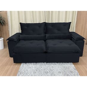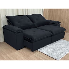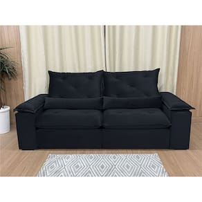 Sofá Retrátil Reclinável 1,60 m Preto 504 Zuqui Plus Nosso Sofá Retrátil Reclinável Zuqui Plus é um produto moderno, com design elegante que combina com qualquer ambiente e deixa sua sala ainda mais linda e aconchegante. MEDIDAS DO SOFÁ: Altura: 1.00 mLargura: 1.60 mProfundidade fechado: 0.90 mProfundidade aberto: 1.65 m Assento: O assento com Pillow top 20cm é retrátil com espuma 28, contem também percinta elástica e molas bonel, que proporcionam uma acomodação extremamente confortável. Almofadas com fibras de poliéster siliconada. Encosto: O Encosto reclinável com espuma 100% fibra de silicone, trazendo mais conforto para você na hora do seu descanso. Braços: Os Braços são com espuma fibra de silicone Estrutura: Sua estrutura é com madeira de eucalipto, 100% reflorestada e seca em estufa, e os pés são produzidos em madeira e rodízio de silicone Revestimento: O revestimento é em tecido veludão Premium, deixando a superfície do sofá muito mais macia. * As imagens dos produtos são meramente ilustrativas