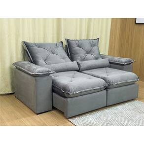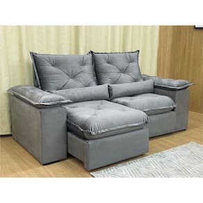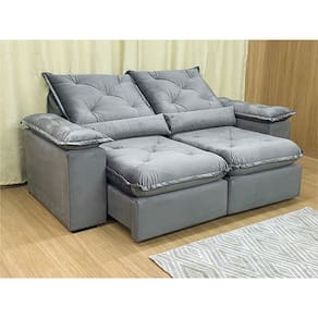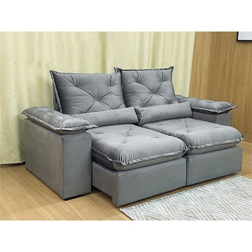 Sofá Retrátil Reclinável 1,80 m Cinza 502 Zuqui Plus Nosso Sofá Retrátil Reclinável Zuqui Plus é um produto moderno, com design elegante que combina com qualquer ambiente e deixa sua sala ainda mais linda e aconchegante. MEDIDAS DO SOFÁ: Altura: 1.00 mLargura: 1.80 mProfundidade fechado: 0.90 mProfundidade aberto: 1.65 m Assento: O assento com Pillow top 20cm é retrátil com espuma 28, contem também percinta elástica e molas bonel, que proporcionam uma acomodação extremamente confortável. Almofadas com fibras de poliéster siliconada. Encosto: O Encosto reclinável com espuma 100% fibra de silicone, trazendo mais conforto para você na hora do seu descanso. Braços: Os Braços são com espuma fibra de silicone Estrutura: Sua estrutura é com madeira de eucalipto, 100% reflorestada e seca em estufa, e os pés são produzidos em madeira e rodízio de silicone Revestimento: O revestimento é em tecido veludão Premium, deixando a superfície do sofá muito mais macia. * As imagens dos produtos são meramente ilustrativas