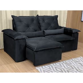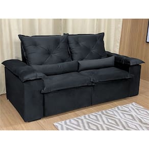 Sofá Retrátil Reclinável 1,80 m Preto 204 Athenas Nosso Sofá Retrátil Reclinável Athenas é um produto moderno, com design elegante que combina com qualquer ambiente e deixa sua sala ainda mais linda e aconchegante. MEDIDAS DO SOFÁ: Altura: 1.10 mLargura: 1.80 mProfundidade fechado: 90 cmProfundidade aberto: 1.65 m Assento: O assento retrátil contem espuma com pilow top de 13 cm de altura, percinta elástica, que proporcionam uma acomodação extremamente confortável. Encosto: O encosto reclinável é feito com espuma 100% fibra de silicone. Além disso, as catracas são de ferro blindado com várias posições de inclinação, trazendo mais conforto para você na hora do descanso. Estrutura: Sua estrutura é com madeira de eucalipto, 100% reflorestada e seca em estufa, e os pés são produzidos em madeira e rodízio de silicone Revestimento: O revestimento é em tecido veludinho, deixando a superfície do sofá muito mais macia. Braços: Braços com Fibra de silicone. * As imagens dos produtos são meramente ilustrativas.