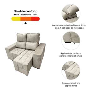 Visual moderno que combina com qualquer ambiente Estrutura firme e durável Espuma confortável para uso diário Encosto removível que facilita a limpeza e transporte Ideal para salas pequenas, apartamentos e espaços versáteis