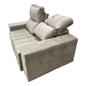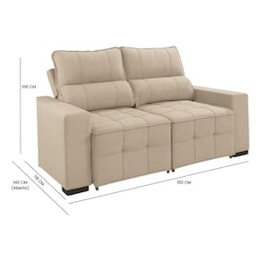 Capacidade: Suporta até 100kg por assento Assento: Espuma D23 com percintas elásticas Encosto: Removível, com fibras e flocos Modelo: Retrátil com rodízios Percintas: Elásticas Tecido: Suede Estrutura: Madeira Eucalipto e OSB Revestimento: Toque macio e resistente Quantidade de Lugares: 2 Peso aproximado: 70kg Pés: 4 unidades Rodízios: 4 unidades Características do Braço: Fixo Medidas (Altura x Largura x Comprimento): Fechado: 106 x 150 x 118 cm Aberto: 106 x 150 x 140 cm