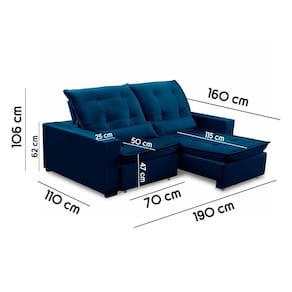 Sofa Retratil Reclinavel 2 Lugares 1,90m Atlantis Veludo Azul Marinho Lansofbr