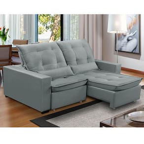 Sofa Retratil Reclinavel 2 Lugares 2,80m Atlantis Veludo Cinza LansofBR