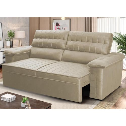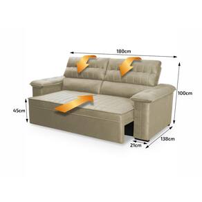 Ele possui encosto reclinável em cinco posições, proporcionando-lhe mais conforto na hora do descanso. Não para por aí: seu assento retrátil conta com espuma D23 e molas bonnel, transformando seu sofá em uma verdadeira cama para assistir seu filme preferido.