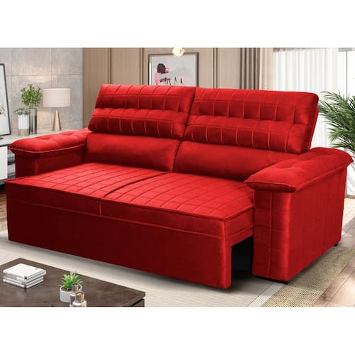 Ele possui encosto reclinável em cinco posições, proporcionando-lhe mais conforto na hora do descanso. Não para por aí: seu assento retrátil conta com espuma D23 e molas bonnel, transformando seu sofá em uma verdadeira cama para assistir seu filme preferido.