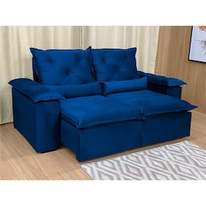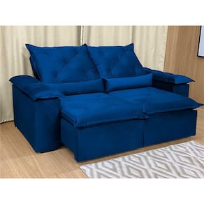 Sofá Retrátil Reclinável 2,00 m Azul 206 Athenas Nosso Sofá Retrátil Reclinável Athenas é um produto moderno, com design elegante que combina com qualquer ambiente e deixa sua sala ainda mais linda e aconchegante. MEDIDAS DO SOFÁ: Altura: 1.10 mLargura: 2.00 mProfundidade fechado: 90 cmProfundidade aberto: 1.65 m Assento: O assento retrátil contem espuma com pilow top de 13 cm de altura, percinta elástica, que proporcionam uma acomodação extremamente confortável. Encosto: O encosto reclinável é feito com espuma 100% fibra de silicone. Além disso, as catracas são de ferro blindado com várias posições de inclinação, trazendo mais conforto para você na hora do descanso. Estrutura: Sua estrutura é com madeira de eucalipto, 100% reflorestada e seca em estufa, e os pés são produzidos em madeira e rodízio de silicone Revestimento: O revestimento é em tecido veludinho, deixando a superfície do sofá muito mais macia. Braços: Braços com Fibra de silicone.