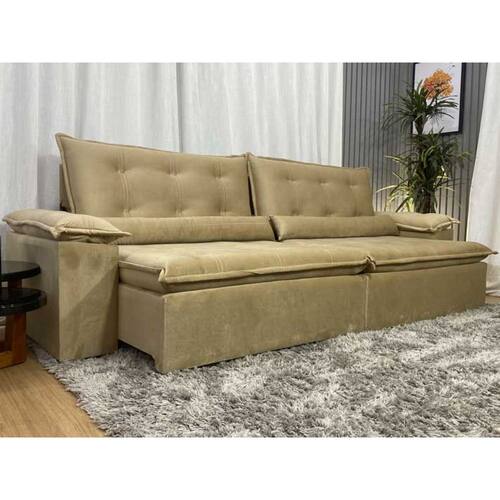 Sofá Retrátil Reclinável 2,00 m Bege 511 Tijuca Plus Nosso Sofá Retrátil Reclinável Tijuca Plus é um produto autêntico, com design elegante que combina com qualquer ambiente e deixa sua sala ainda mais linda, aconchegante e moderna. MEDIDAS DO SOFÁ: Altura: 1.10 m Largura: 2.00 m Profundidade Sofá fechado: 90 cm Sofá aberto Reclinável da ponta da almofada até o encosto: 1.60 m Assento: O assento retrátil contem espuma AG 33 Fibra de silicone e percinta elástica que proporcionam uma acomodação extremamente confortável. Encosto: O encosto reclinável é feito com espuma 100% fibra de silicone. Além disso, as catracas são de ferro blindado com várias posições de inclinação, trazendo mais conforto para você na hora do descanso. Estrutura: Sua estrutura é com madeira de eucalipto, 100% reflorestada e seca em estufa, e os pés são produzidos em madeira e rodízio de silicone Revestimento: O revestimento é em tecido veludão, deixando a superfície do sofá muito mais macia. Braços: Braços com Fibra de silicone. * As imagens dos produtos são meramente ilustrativas. As cores podem sofrer variações dependendo da luminosidade, tipo de câmera ou mesmo da visualização das imagens em computadores, notebooks com telas LCD ou LED, tablets ou smartphones, dependendo da quantidade de pixels, podendo deixar as imagens com cores mais opacas ou cores mais vibrantes. Marca: Não Informado