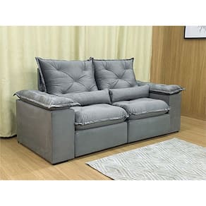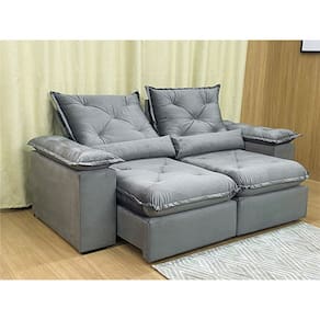 Sofá Retrátil Reclinável 2,00 m Cinza 502 Zuqui Plus Nosso Sofá Retrátil Reclinável Zuqui Plus é um produto moderno, com design elegante que combina com qualquer ambiente e deixa sua sala ainda mais linda e aconchegante. MEDIDAS DO SOFÁ: Altura: 1.00 mLargura: 2.00 mProfundidade fechado: 1.12 mProfundidade aberto: 1.60 m Assento: O assento é retrátil com espuma 28, contem também percinta elástica e molas bonel, que proporcionam uma acomodação extremamente confortável. Almofadas com fibras de poliéster siliconada. Encosto: O Encosto reclinável com espuma 100% fibra de silicone, trazendo mais conforto para você na hora do seu descanso. Braços: Os Braços são com espuma fibra de silicone Estrutura: Sua estrutura é com madeira de eucalipto, 100% reflorestada e seca em estufa, e os pés são produzidos em madeira e rodízio de silicone Revestimento: O revestimento é em tecido veludão Premium, deixando a superfície do sofá muito mais macia. * As imagens dos produtos são meramente ilustrativas