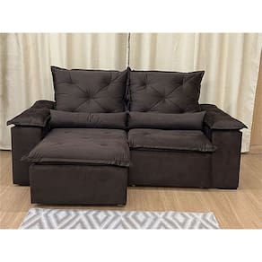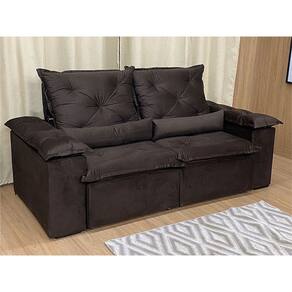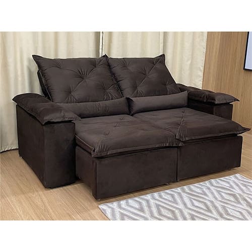 Sofá Retrátil Reclinável 2,00 m Marrom 200 Athenas Nosso Sofá Retrátil Reclinável Athenas é um produto moderno, com design elegante que combina com qualquer ambiente e deixa sua sala ainda mais linda e aconchegante. MEDIDAS DO SOFÁ: Altura: 1.10 mLargura: 2.00 mProfundidade fechado: 90 cmProfundidade aberto: 1.65 m Assento: O assento retrátil contem espuma com pilow top de 13 cm de altura, percinta elástica, que proporcionam uma acomodação extremamente confortável. Encosto: O encosto reclinável é feito com espuma 100% fibra de silicone. Além disso, as catracas são de ferro blindado com várias posições de inclinação, trazendo mais conforto para você na hora do descanso. Estrutura: Sua estrutura é com madeira de eucalipto, 100% reflorestada e seca em estufa, e os pés são produzidos em madeira e rodízio de silicone Revestimento: O revestimento é em tecido veludinho, deixando a superfície do sofá muito mais macia. Braços: Braços com Fibra de silicone. * As imagens dos produtos são meramente ilustrativas.