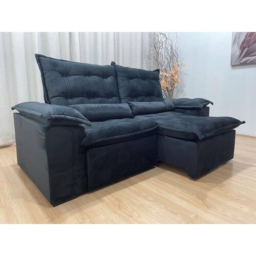 Sofá Retrátil Reclinável 2,00 m Preto 504 Tijuca Plus Nosso Sofá Retrátil Reclinável Tijuca Plus é um produto autêntico, com design elegante que combina com qualquer ambiente e deixa sua sala ainda mais linda, aconchegante e moderna. MEDIDAS DO SOFÁ: Altura: 1.10 m Largura: 2.00 m Profundidade Sofá fechado: 90 cm Sofá aberto Reclinável da ponta da almofada até o encosto: 1.60 m Assento: O assento retrátil contem espuma AG 33 Fibra de silicone e percinta elástica que proporcionam uma acomodação extremamente confortável. Encosto: O encosto reclinável é feito com espuma 100% fibra de silicone. Além disso, as catracas são de ferro blindado com várias posições de inclinação, trazendo mais conforto para você na hora do descanso. Estrutura: Sua estrutura é com madeira de eucalipto, 100% reflorestada e seca em estufa, e os pés são produzidos em madeira e rodízio de silicone Revestimento: O revestimento é em tecido veludão, deixando a superfície do sofá muito mais macia. Braços: Braços com Fibra de silicone. * As imagens dos produtos são meramente ilustrativas. As cores podem sofrer variações dependendo da luminosidade, tipo de câmera ou mesmo da visualização das imagens em computadores, notebooks com telas LCD ou LED, tablets ou smartphones, dependendo da quantidade de pixels, podendo deixar as imagens com cores mais opacas ou cores mais vibrantes. Marca: Não Informado