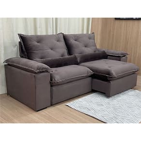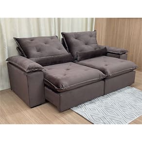 Sofá Retrátil Reclinável 2,30 m Marrom 500 Zuqui Plus Nosso Sofá Retrátil Reclinável Zuqui Plus é um produto moderno, com design elegante que combina com qualquer ambiente e deixa sua sala ainda mais linda e aconchegante. MEDIDAS DO SOFÁ: Altura: 1.00 mLargura: 2.30 mProfundidade fechado: 1.12 mProfundidade aberto: 1.60 m Assento: O assento é retrátil com espuma 28, contem também percinta elástica e molas bonel, que proporcionam uma acomodação extremamente confortável. Almofadas com fibras de poliéster siliconada. Encosto: O Encosto reclinável com espuma 100% fibra de silicone, trazendo mais conforto para você na hora do seu descanso. Braços: Os Braços são com espuma fibra de silicone Estrutura: Sua estrutura é com madeira de eucalipto, 100% reflorestada e seca em estufa, e os pés são produzidos em madeira e rodízio de silicone Revestimento: O revestimento é em tecido veludão Premium, deixando a superfície do sofá muito mais macia. * As imagens dos produtos são meramente ilustrativas