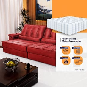 Sofá Retrátil Reclinável 2,30m Ascari Suede Velut Vermelho molas Ensacadas - King House
