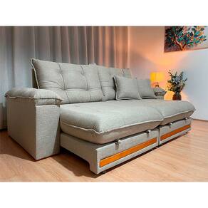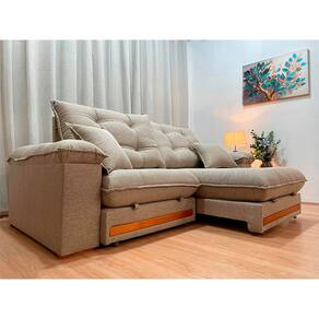 Sofá Retrátil Reclinável 2,50 m Linho Bege A226 Gael