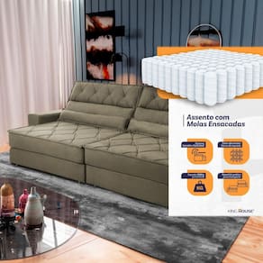 Ele possui encosto reclinável em cinco posições, proporcionando-lhe mais conforto na hora do descanso. Não para por aí: seu assento retrátil conta com espuma D33 e molas ensacadas, transformando seu sofá em uma verdadeira cama para assistir seu filme preferido.