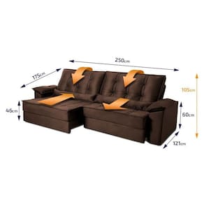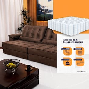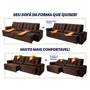 Sofá Retrátil Reclinável 2,50m Ascari Suede Velut Marrom molas Ensacadas - King House