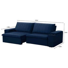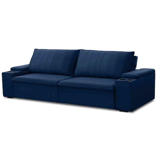 O Sofá Retrátil Reclinável 3 Lugares 245cm Baluart F05 Veludo Azul, da Mpozenato, é um estofado elegante e aconchegante, que combina estilo e conforto. Com um design moderno e clean, esse sofá 3 lugares é perfeito para qualquer sala de estar, pois, além de proporcionar um espaço acolhedor e relaxante para você e seus convidados, ainda harmoniza facilmente com diversos estilos de decoração.
