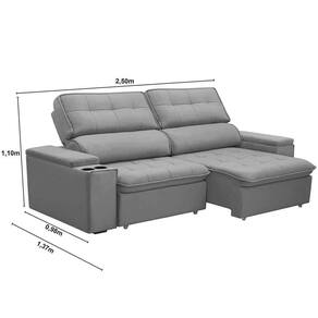 Sofá Retrátil Reclinável 3 Lugares 250Cm Ginevra F05 Veludo Prata - Blush