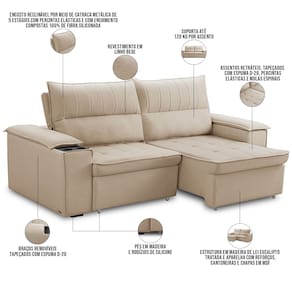 Com estrutura robusta e tapeçaria de alta densidade, esse sofá 3 lugares expressa não somente descanso, como também funcionalidade; afinal, você pode aproveitá-lo fechado, durante uma conversa com as visitas, ou até mesmo com os assentos abertos e os encostos reclinados para maratonar aquela série favorita, enquanto aproveita para saborear alguns petiscos e bebidas, que podem facilmente serem acomodadas em ambos os braços, que contam com porta-copos para facilitar ainda mais a dinâmica do entretenimento. Ah, e você pode ocultá-lo quando não estiver em uso. Demais, não é mesmo?!