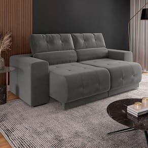 Sofá Retrátil Reclinável 3 Lugares Veludo Cinza