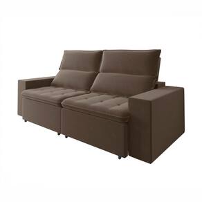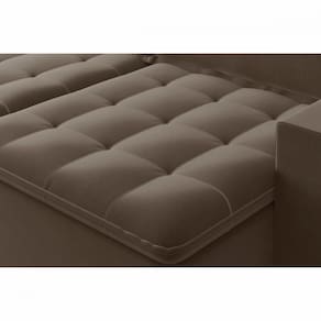 Características: - Cor: Cappuccino - Tecido: Veludo - Estrutura de madeira eucalipto - Assento com duplo molejo molas bonnel + ensacada, espuma soft D26, percinta elástica e espuma selada - Encosto fibra siliconada e almofadas em fibras - 4 pés de madeira em cada módulo - 2 rodízios de silicone em cada módulo - Suporte de peso 160 kg cada assento - Garantia 03 meses