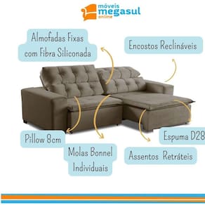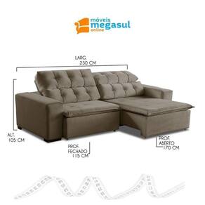Ao chegar em casa nada melhor que o aconchego de um sofá extravagante em conforto, por isso conte com o Sofá 4 Lugares Retrátil e Reclinável Alasca 2,30m na cor Bege, fabricado pela MegaSul, possui encosto reclinável, com catraca silenciosa 5 estágios, almofadas fixas de fibra siliconada. Perfeito para seus momentos de descanso e descontração! Valorize e complete o seu lar com muita beleza e funcionalidade! Aproveite e experimente o novo! O tecido veludo é de alto padrão, depois da seda, é um dos tecidos mais nobres. Possui textura ricamente macia e suave, associado a classe e elegância com a proposta de sensação ao toque mais sensível e encantador. Além de trazer sofisticação para o produto, ter variações de cores extremamente modernas, que agregam na decoração do seu ambiente, com o ar de sofisticação, mais decorativo. Estrutura do Sofá 4 Lugares Retrátil e Reclinável Alasca é eucalipto tratado de reflorestamento ecologicamente correto. O assento é retrátil, pillow, espuma D-28, revestido com manta fibra siliconada, contém molas individuais bonnel, corrediça metálica e percinta elástica. Dados Técnicos do Sofá 4 Lugares Retrátil e Reclinável Alasca: Largura: 2,30m Altura: 1,05m Profundidade com assento fechado: 1,15m Profundidade com assento aberto: 1,70m Cor: Bege? 526 OBS: Estofado disponível em mais de 10 cores em tecido veludo de alta qualidade. * Para escolher outra a cor, informe o código nas observações adicionais ao finalizar a compra. Caso tenha alguma dúvida, ou não consiga escolher a cor durante a compra, Após a compra nosso atendimento entrará em contato com você para confirmar a COR e o TECIDO, fique tranquila (o). Tecido/Revestimento: Veludo Informações Adicionais: Garantia de 90 dias para defeitos de fabricação; Limpeza ou Manutenção: Utilizar escova com cerdas macias. NÃO utilizar produtos Abrasivos. Tecido/Revestimento: Veludo Montagem e instalação por conta do comprador; As imagens ambientadas são meramente ilustrativas e podem apresentar itens que não compõe o produto; As cores do produto podem variar de acordo com o monitor, a iluminação do ambiente ou sua percepção visual. Informações sobre a entrega: VERIFIQUE as MEDIDAS para garantir que o sofá passe na porta e nos corredores de sua residência; NÃO NOS RESPONSABILIZAMOS por SUBIR o sofá por ESCADAS, NEM IÇAR o sofá;