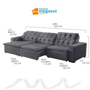 Ao chegar em casa nada melhor que o aconchego de um sofá extravagante em conforto, por isso conte com o Sofá 07 Lugares Retrátil e Reclinável Alasca 3,50 m na cor Bege, fabricado pela MegaSul, possui encosto reclinável, com catraca silenciosa 5 estágios, almofadas fixas de fibra siliconada. Perfeito para seus momentos de descanso e descontração! Valorize e complete o seu lar com muita beleza e funcionalidade! Aproveite e experimente o novo! O tecido veludo é de alto padrão, depois da seda, é um dos tecidos mais nobres. Possui textura ricamente macia e suave, associado a classe e elegância com a proposta de sensação ao toque mais sensível e encantador. Além de trazer sofisticação para o produto, ter variações de cores extremamente modernas, que agregam na decoração do seu ambiente, com o ar de sofisticação, mais decorativo. Estrutura do Sofá 07 Lugares Retrátil e Reclinável Alasca é eucalipto tratado de reflorestamento ecologicamente correto. O assento é retrátil, pillow, espuma D-28, revestido com manta fibra siliconada, contém molas individuais bonnel, corrediça metálica e percinta elástica. Dados Técnicos do Sofá 4 Lugares Retrátil e Reclinável Alasca: Largura:3,50 m Altura: 1,05m Profundidade com assento fechado: 1,15m Profundidade com assento aberto: 1,70m 3 Módulos de 100 CM Braços de 25 cm cada Cor: Cinza OBS: Estofado disponível em mais de 10 cores em tecido veludo de alta qualidade. * Para escolher outra a cor, informe o código nas observações adicionais ao finalizar a compra. Caso tenha alguma dúvida, ou não consiga escolher a cor durante a compra, Após a compra nosso atendimento entrará em contato com você para confirmar a COR e o TECIDO, fique tranquila (o). Tecido/Revestimento: Veludo Informações Adicionais: Garantia de 90 dias para defeitos de fabricação; Limpeza ou Manutenção: Utilizar escova com cerdas macias. NÃO utilizar produtos Abrasivos. Tecido/Revestimento: Veludo Montagem e instalação por conta do comprador; As imagens ambientadas são meramente ilustrativas e podem apresentar itens que não compõe o produto; As cores do produto podem variar de acordo com o monitor, a iluminação do ambiente ou sua percepção visual. Informações sobre a entrega: VERIFIQUE as MEDIDAS para garantir que o sofá passe na porta e nos corredores de sua residência; NÃO NOS RESPONSABILIZAMOS por SUBIR o sofá por ESCADAS, NEM IÇAR o sofá;