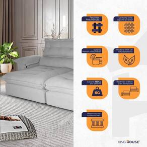 Imagine ter em sua casa um sofá que não só combina com seu ambiente, mas também transforma seus momentos de descanso em uma experiência única. O Sofá Aconchego é pensado para proporcionar conforto de verdade: seu encosto reclinável ajusta-se em cinco posições, permitindo relaxar como você merece, seja para ler um livro, bater papo ou simplesmente descansar.