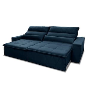 Sofá Retrátil Reclinável Amsterdam 2,10m Suede Velut Azul Marinho c/ Molas no Assento - King House - Azul Turquesa