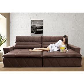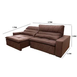 Sofá Retrátil/Reclinável Amsterdam 2,70 m Suede Veludo Tabaco c/ Molas no Assento - King Kong
