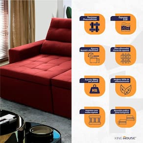 Ele possui encosto reclinável em cinco posições, proporcionando-lhe mais conforto na hora do descanso. Não para por aí: seu assento retrátil conta com espuma D28 e molas espirais, transformando seu sofá em uma verdadeira cama para assistir seu filme preferido.