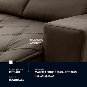 Ele possui encosto reclinável em cinco posições, proporcionando-lhe mais conforto na hora do descanso. Não para por aí: seu assento retrátil conta com espuma D28 e molas espirais, transformando seu sofá em uma verdadeira cama para assistir seu filme preferido.