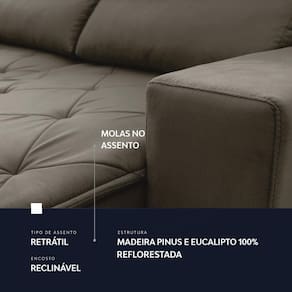 Ele possui encosto reclinável em cinco posições, proporcionando-lhe mais conforto na hora do descanso. Não para por aí: seu assento retrátil conta com espuma D28 e molas espirais, transformando seu sofá em uma verdadeira cama para assistir seu filme preferido.